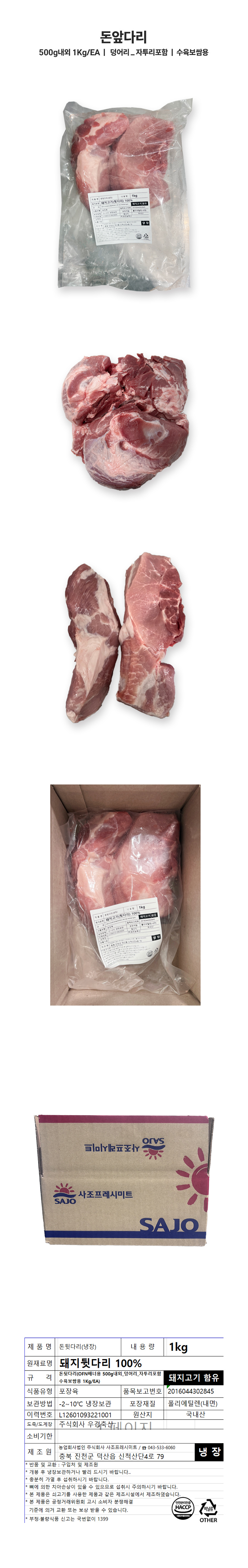 ♥정육특가♥돈뒷다리( 500g내외_덩어리_자투리포함 수육보쌈용 1Kg/EA)
