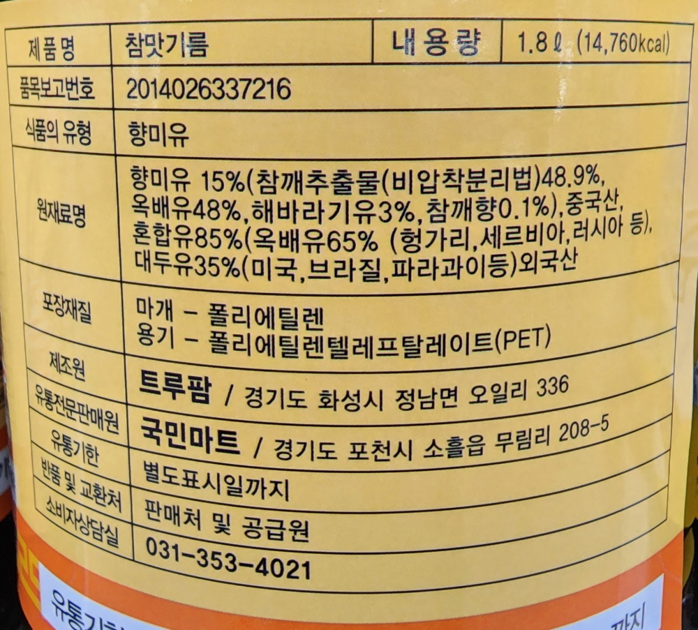 ♥첫구매♥온국민 참맛기름 1.8L 이미지