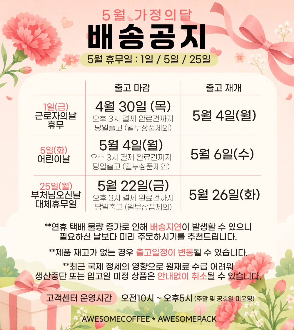 평일 오후 2시 이전 주문 확정 시 당일 발송입니다.