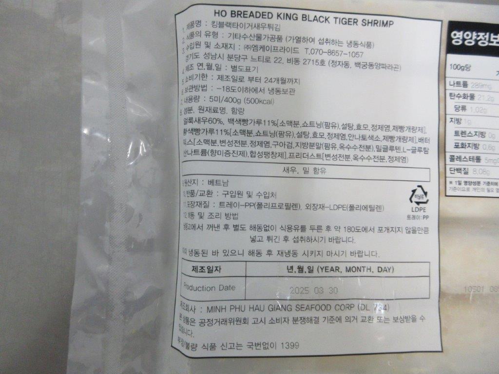 킹블랙타이거새우튀김(헤드온_80g*5미 400g/EA) 이미지
