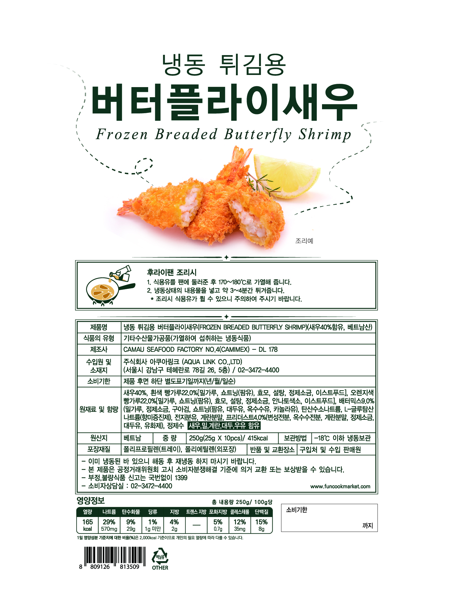 아쿠아링크 버터플라이새우튀김(25g*10입 250g/EA) 이미지