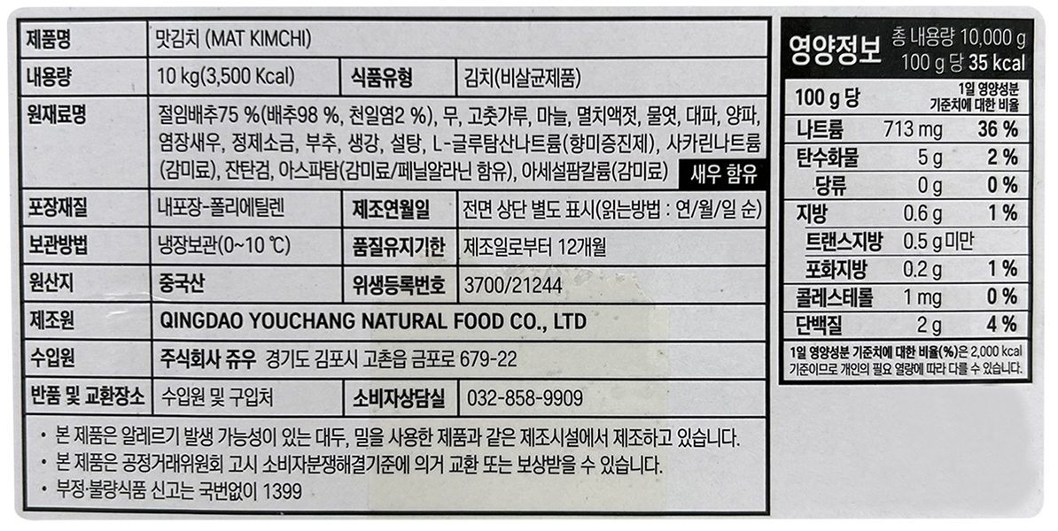 [쥬우]맛김치(중국산)BOX 10KG 이미지