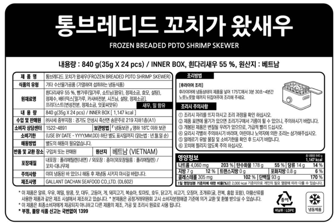 통브레디드꼬치가왔새우(새우꼬치_35g*24입 840g/EA)