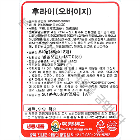 풍림푸드 반숙계란후라이(45g*12개입 540g/EA)