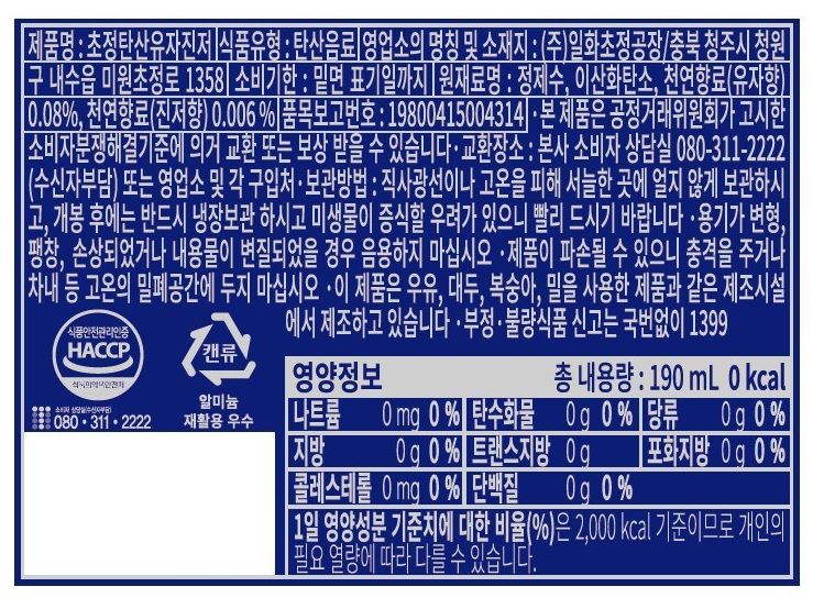 일화 초정탄산수유자진저(190ml_캔 190g/EA)