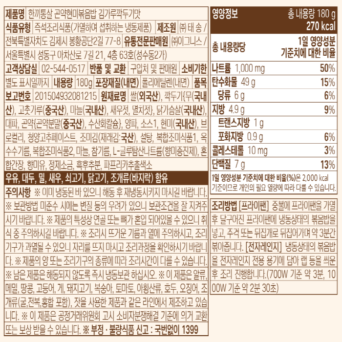 한끼통살 곤약현미볶음밥(김가루깍두기맛 180g/EA)
