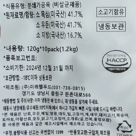 소햄버거패티(120g*10입 수제버거패티용 1.2Kg/EA)