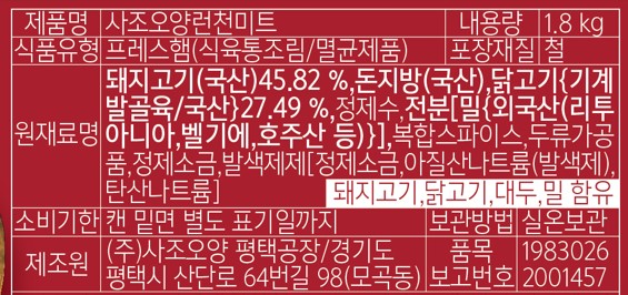 사조오양 런천미트(1.8Kg/EA) 이미지