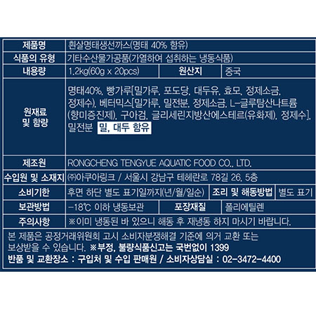 아쿠아링크 흰살명태생선까스(60g*20입 1.2Kg/EA)