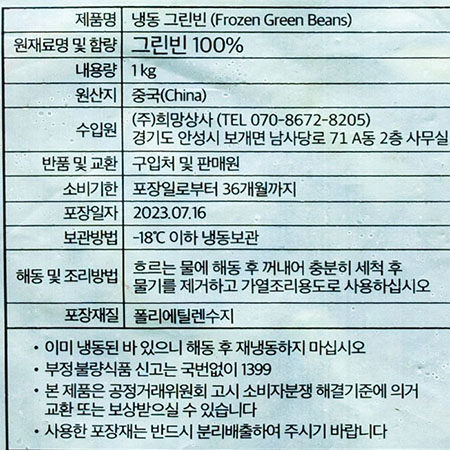 냉동그린빈스(홀_데친 1Kg/EA) 이미지