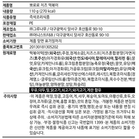 뽀로로떡볶이(치즈 110g/EA) 이미지