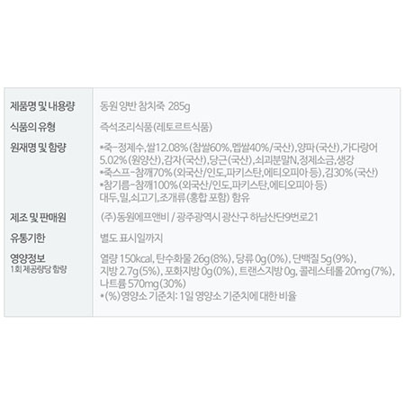 양반죽 참치죽(용기 285g/EA) 이미지