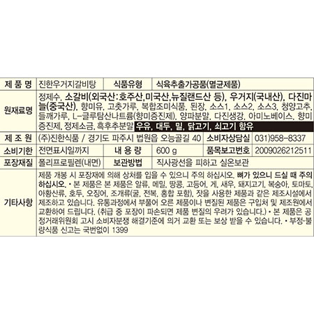 진한식품 우거지갈비탕(20입 600g/EA)