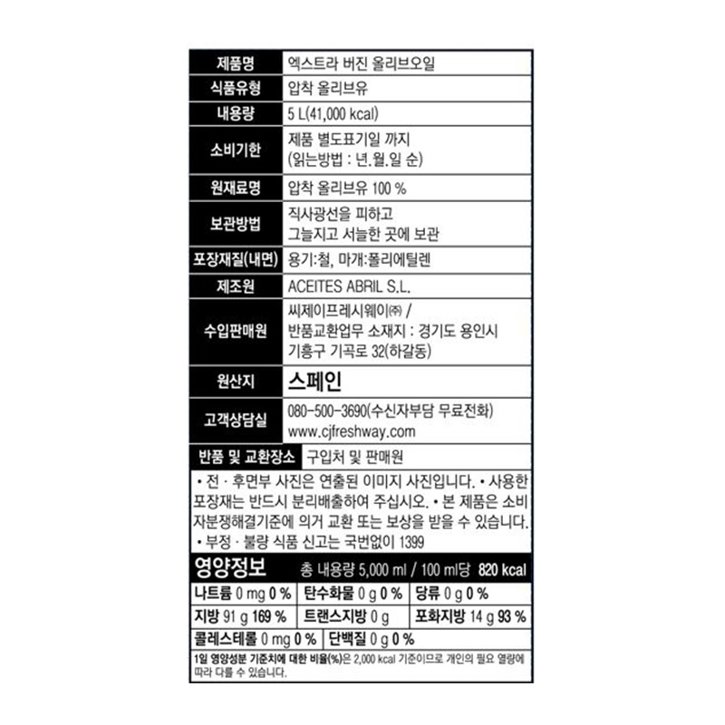 ★초특가★ABRIL 엑스트라버진올리브유(5L_직수입 5Kg/EA) 올리브 오리브유