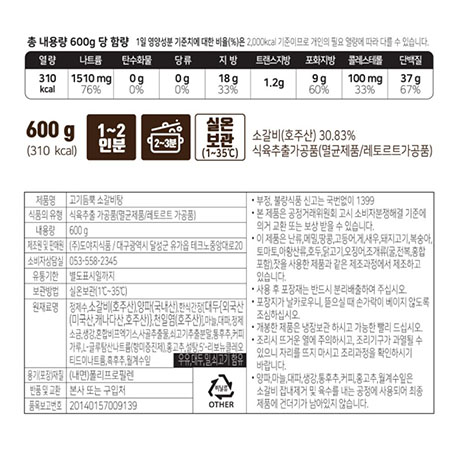 도야지식품 맘으로소갈비탕(600g/EA) 이미지
