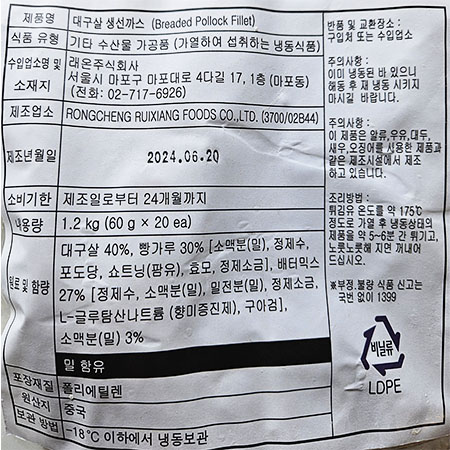 래온 생선까스(대구살_60g*20입 1.2Kg/EA)