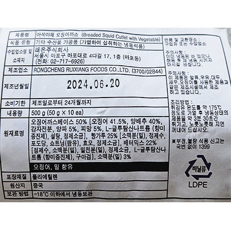 래온 아삭야채오징어까스(50g*10입 500g/EA)