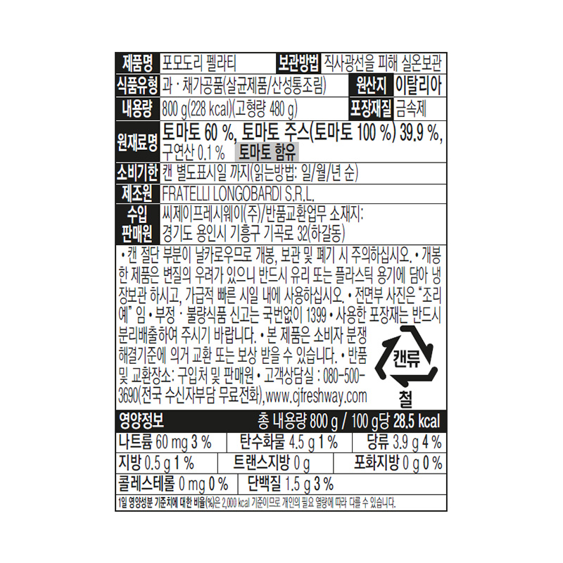 프라텔리롱고바디 토마토홀(직수입 800g/EA)