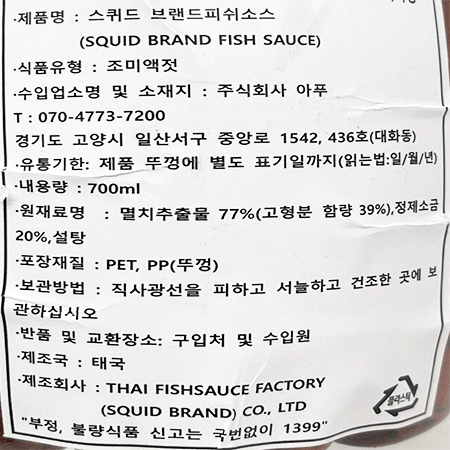 예주나라스퀴드 피쉬소스(700g/EA) 이미지