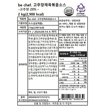 비셰프 고추장제육볶음소스(2Kg/EA)