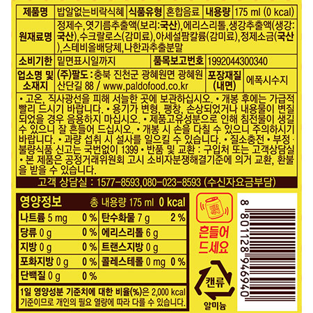 비락 밥알없는식혜(175ml_제로 175g/EA)
