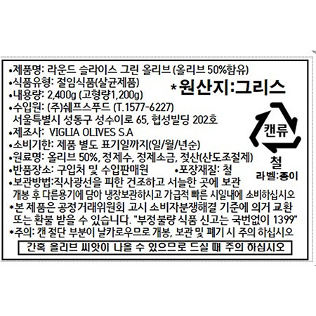 리스토리스 그린올리브(슬라이스 2.4Kg/EA) 이미지