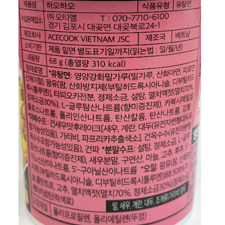 예주나라 하오하오컵라면(새우맛 68g/EA)