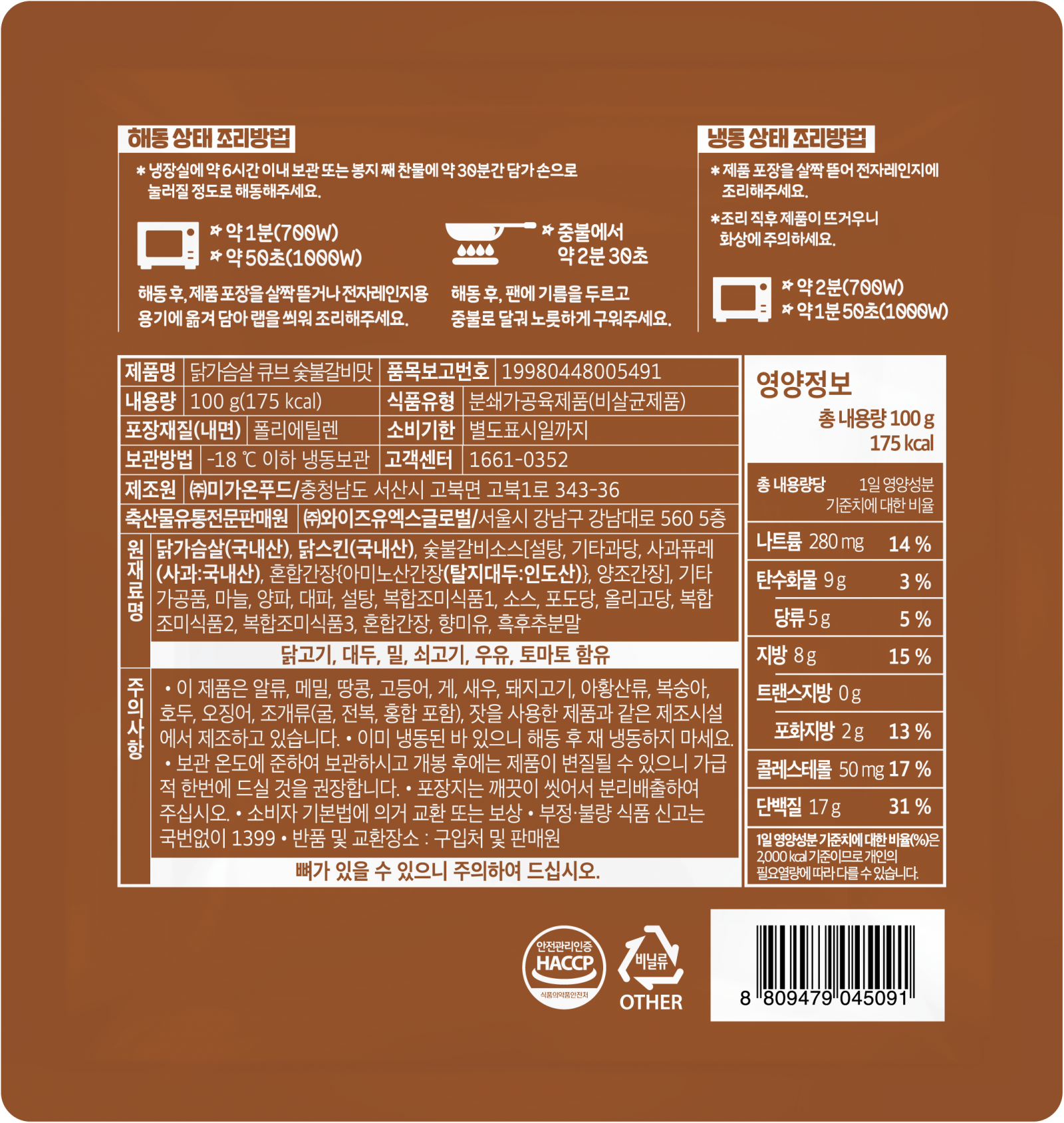 아임닭 닭가슴살큐브(숯불갈비맛 100g/EA) 이미지