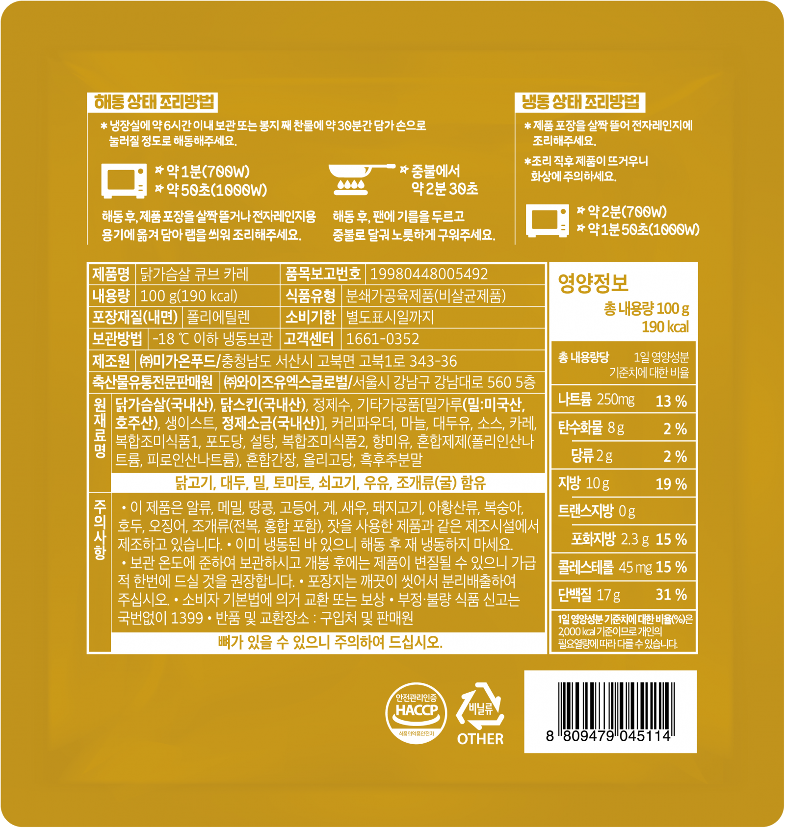 아임닭 닭가슴살큐브(카레맛 100g/EA) 이미지
