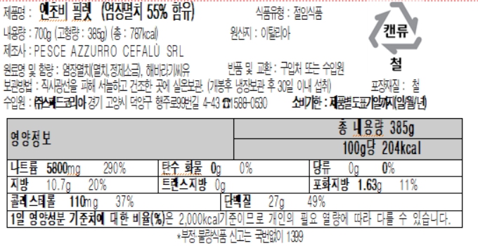Refiletto 앤초비필렛(700g/EA) 이미지