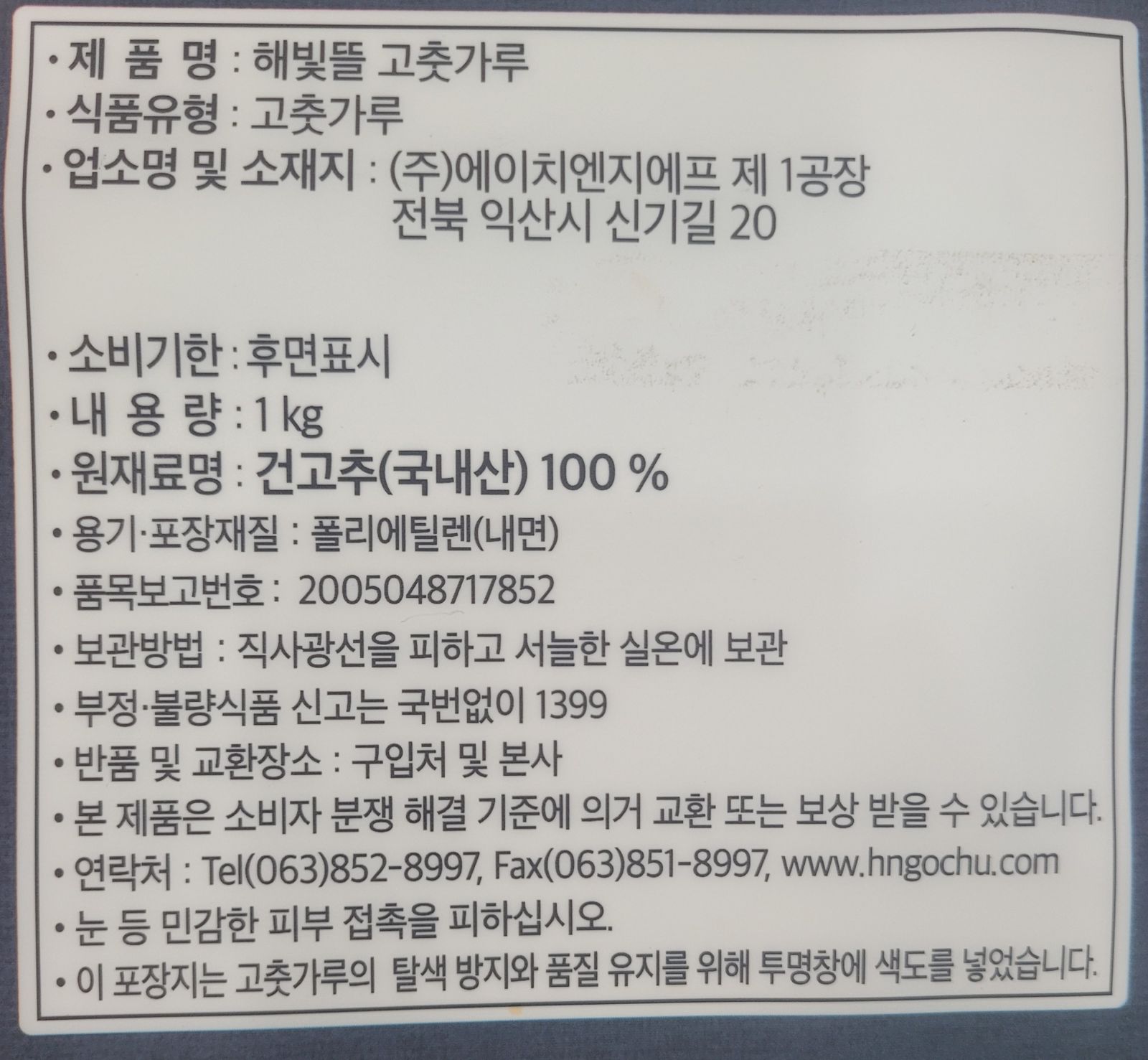 해빛뜰 고춧가루(거친_8mesh 1Kg/EA)