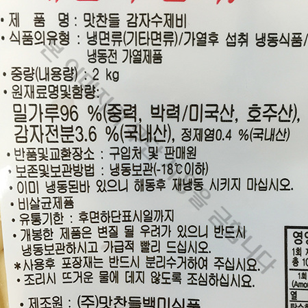 백미 감자수제비(2Kg/EA) 이미지