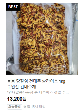국산은 채가 크니 탕용으로 필요하신 고객님들은 국산 대추채 구매를 추천드립니다!