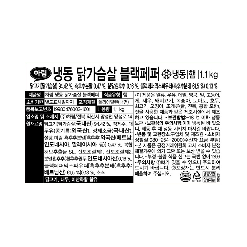 하림 닭가슴살(블랙페퍼 1.1Kg/EA)
