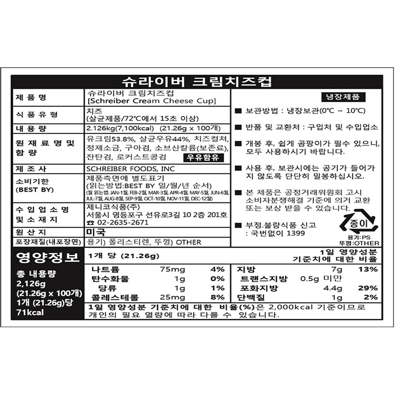 슈라이버 크림치즈(컵포션_21.26g*20입 452g/EA)