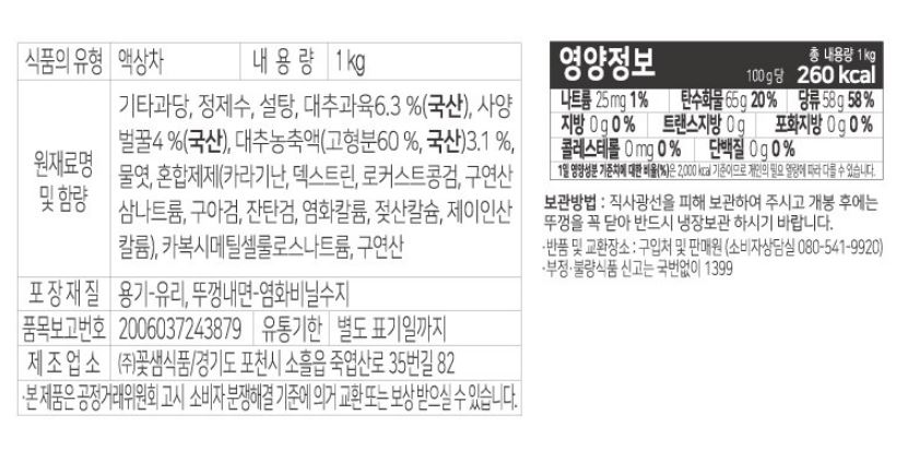꽃샘식품 꿀대추차(1Kg/EA) 이미지