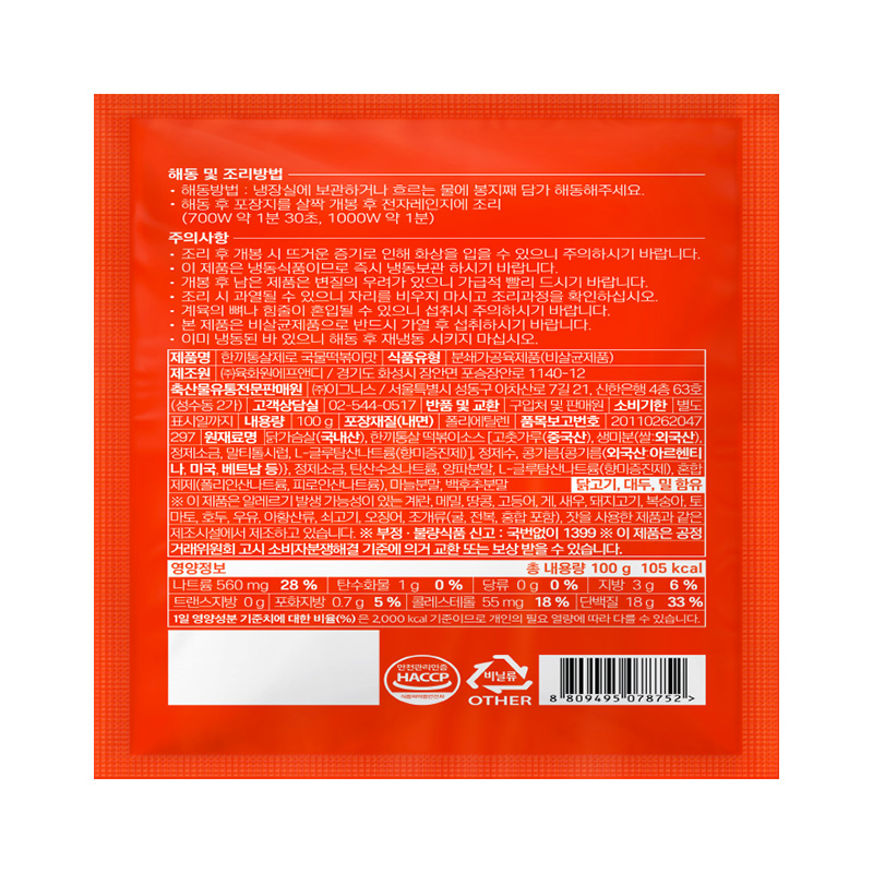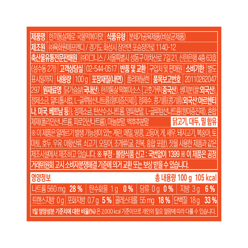 한끼통살제로 닭가슴살(국물떡볶이맛 100g/EA)