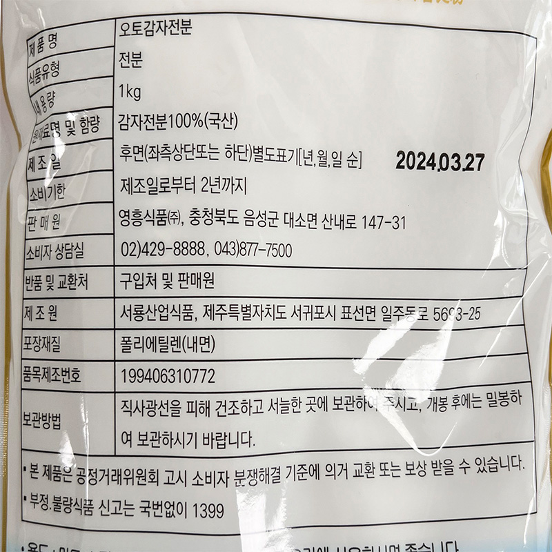 오토 감자전분(국산100% 1Kg/EA) 이미지