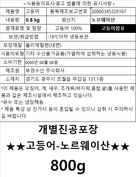 사랑해어 고등어필렛(개별진공포장_100~130g이상 800g/EA) 이미지