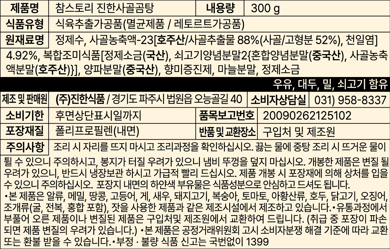 참스토리 진한사골곰탕(300g/EA) 이미지