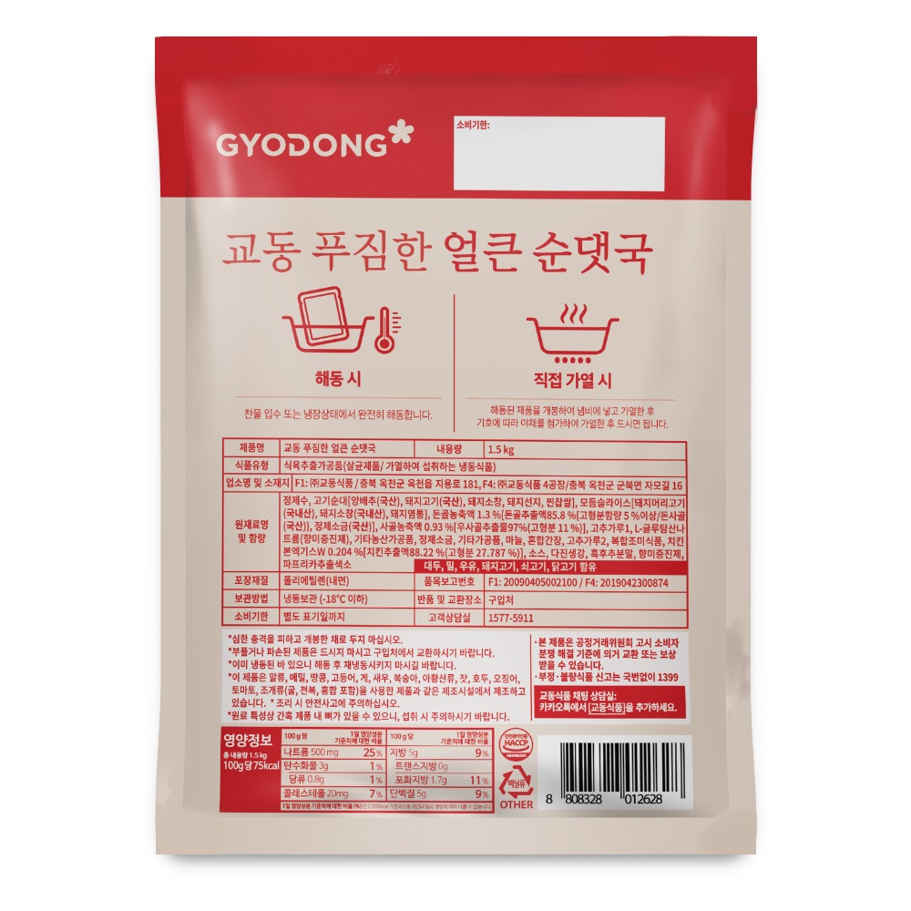 교동식품 푸짐한얼큰순댓국(간편조리_스트레이트 1.5Kg/EA)