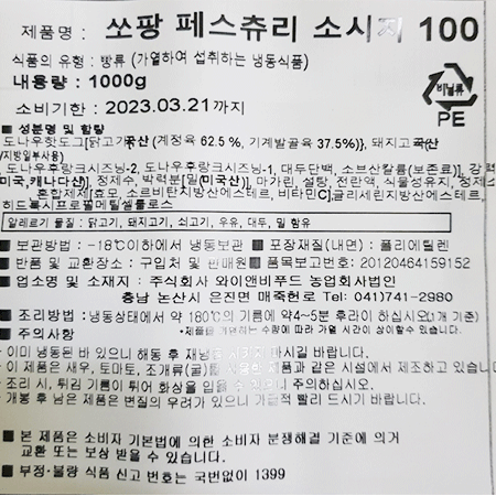 쏘팡 페스츄리소시지(회오리핫도그_100g*10개입 1Kg/EA)
