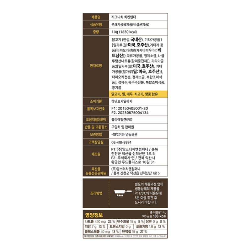 맘스터치 시그니처치킨텐더(1Kg/EA)
