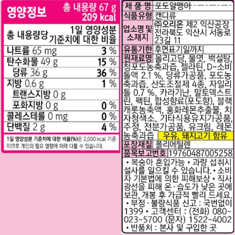 오리온 포도알맹이젤리(67g*10개입 670g/EA)