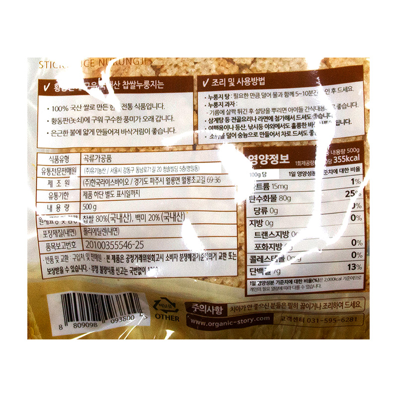 오가닉스토리 국내산찹쌀누룽지(500g/EA)