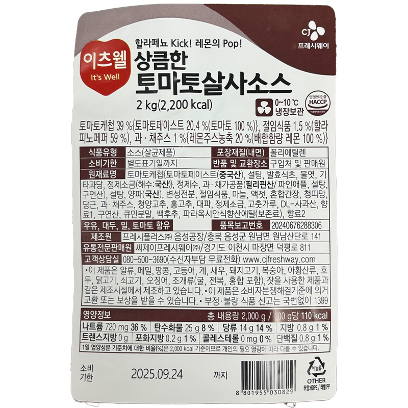 이츠웰 상큼한토마토살사소스(2Kg/EA) 이미지
