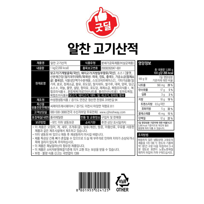 굿딜 엄선알찬고기산적(20g±2g*50±2개입 1Kg/EA)