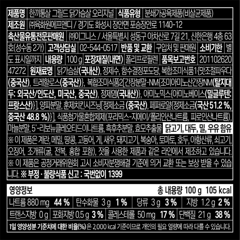 한끼통살 그릴드닭가슴살오리지널(100g/EA)