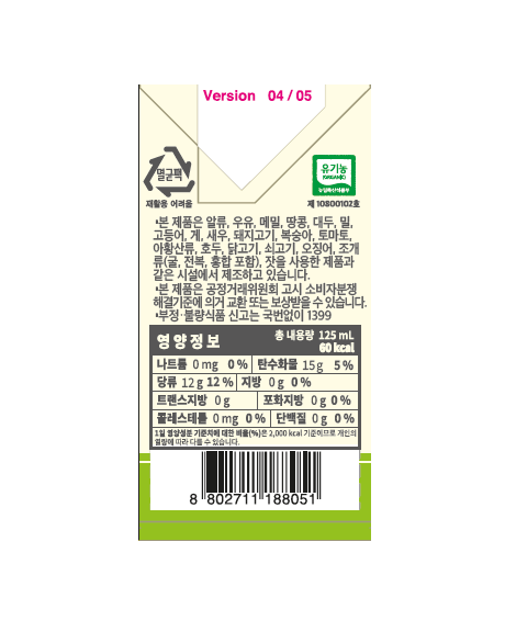 하늘청 밥알없는맑은식혜(125ml_유기농 125g/EA)