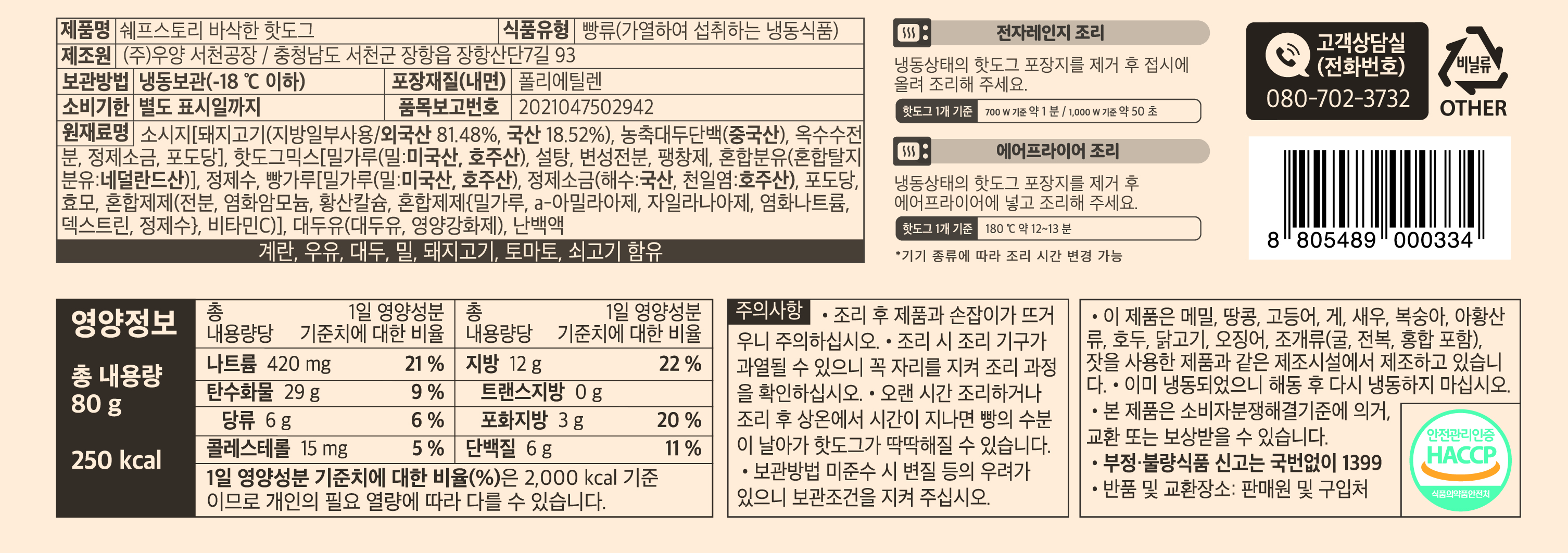 쉐프스토리 바삭한핫도그(개별포장 80g/EA)